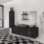 Élevez le niveau de sophistication de votre salle d’eau avec ce set de 9 pièces de mobilier avec lavabo aux lignes épurées et couleur noir intense. Non seulement pratique par son design bien pensé, cette collection optimise l’espace tout en offrant un look moderne et chic à votre salle de bains.