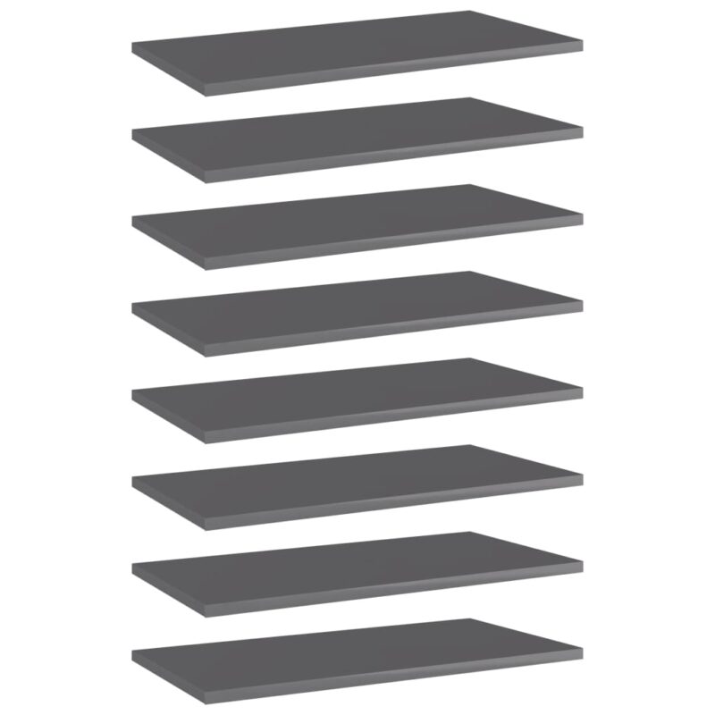 Améliorez votre espace de rangement avec nos Panneaux bibliothèque 8 pcs Gris brillant 60x30x1,5cm Aggloméré, la solution parfaite pour ceux qui sont à court d’espace. Ajoutez une touche de sophistication avec ces étagères au fini gris brillant. Leur composition en aggloméré de qualité garantit durabilité et robustesse, tout en restant simples à entretenir. Un coup de chiffon humide suffit pour les faire briller. Ajoutez-les facilement à votre mobilier pour augmenter votre capacité de stockage ou remplacez les anciennes étagères abîmées sans tracas.