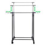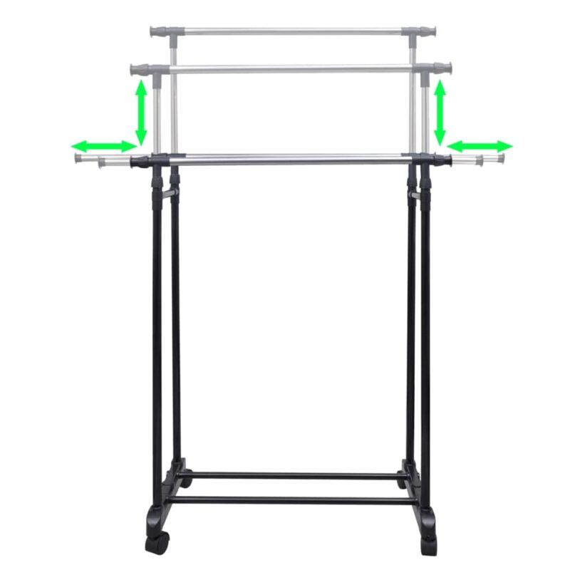Profitez d’une capacité d’accrochage généreuse avec des barres extensibles qui s’étendent jusqu’à 150 cm, offrant un large espace pour sécher ou ranger vos vêtements sans encombrer votre espace vital. Les hauteurs de ces porte-manteaux s’ajustent aisément entre 108 cm et 170 cm, s’adaptant ainsi à vos besoins spécifiques en toutes circonstances.