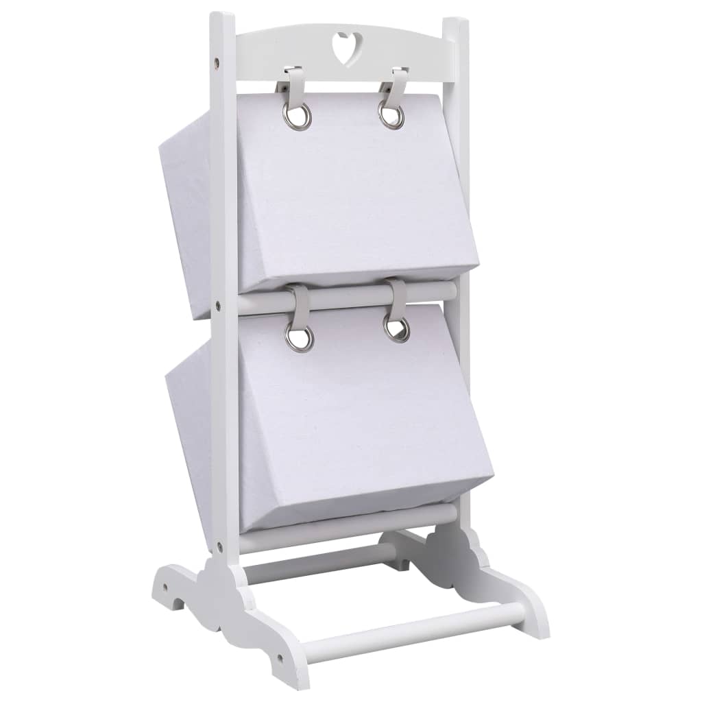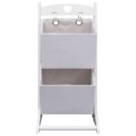 Dites adieu au désordre avec notre Support à panier 2 niveaux Blanc 35x35x72 cm Bois. Ce meuble astucieux sera le compagnon idéal dans votre quête d’un intérieur organisé et épuré. Que ce soit dans la salle de bain, la chambre ou le bureau, ce support trouve sa place et remplit son rôle avec brio. Conçu avec un cadre robuste en MDF complété par du bois de paulownia de première qualité, cet accessoire promet solidité et durabilité. À l’intérieur, les deux paniers spacieux offrent un espace généreux pour garder différentes affaires à portée de main et bien rangées. En plus, ces paniers pratiques sont amovibles et se plient sans effort pour se faire tout petits quand vous n’en avez pas besoin. Démarrer l’assemblage de ce meuble rangement est un véritable jeu d’enfant!