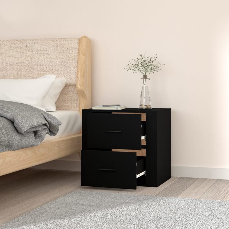 Introduisez un élément à la fois chic et utile dans votre espace avec cette table de chevet murale Noir 50x36x47 cm. Se distinguant par son allure moderne, elle enrichit le cachet de votre chambre tout en offrant une solution de rangement optimale.