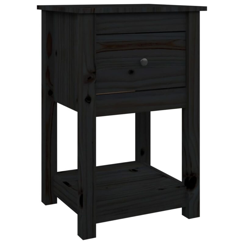 Table de chevet noir en bois de pin massif élégante