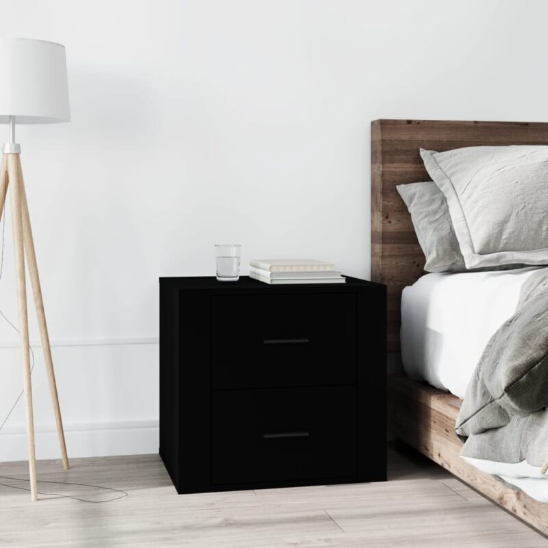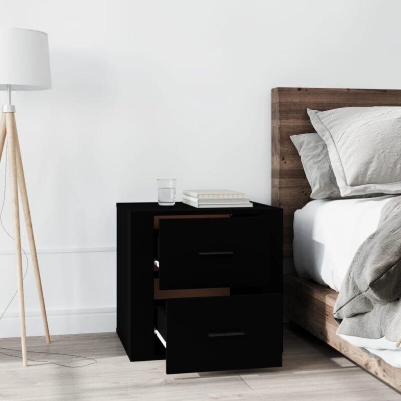 Élevez l’esthétique de votre chambre avec cette table de chevet Noir 50x39x47 cm, conçue pour apporter une touche de sophistication à votre espace personnel. Construite à partir de bois d’ingénierie de premier choix, cette pièce de mobilier se distingue par sa surface lisse et sa robustesse remarquable qui assurent une durabilité face à l’usure quotidienne et une résistance optimale à l’humidité.