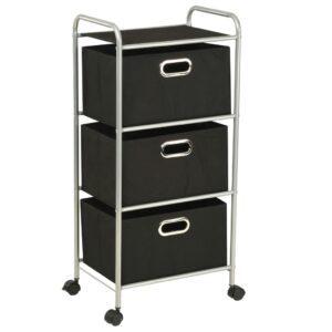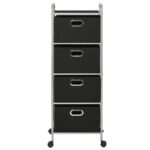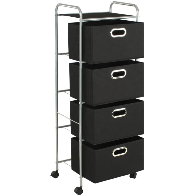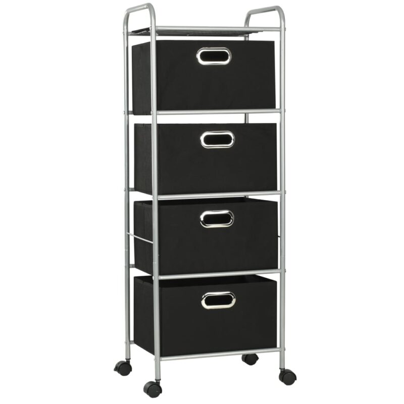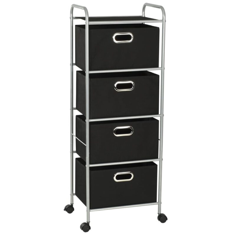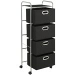 Optimisez l’organisation de votre intérieur grâce à cette unité à étagères avec 4 boîtes de rangement Acier et tissu, idéal pour infuser une touche de modernité et de praticité à votre chambre ou salle d’eau. Son armature, faite d’une structure en acier recouvert d’une peinture époxy, assure un équilibre parfait entre légèreté et résistance. La mobilité est au rendez-vous grâce aux quatre roulettes pivotantes, simplifiant ainsi le déplacement de l’unité au gré de vos envies. Avec ses quatre boîtes spacieuses en tissu écoresponsable, dites adieu au désordre et maintenez vos accessoires, tels que vos trousses, vos souliers, serviettes ou divers petits articles, élégamment organisés et à votre portée. La présence d’œillets en métal sur chaque boîte n’est pas qu’un détail pratique pour les manipuler aisément ; c’est aussi une finition chic qui peaufine l’esthétique de l’ensemble. Et pour ne rien laisser au hasard, le plateau supérieur s’offre à vous comme un espace supplémentaire pour vos objets divers. L’assemblage est un jeu d’enfant, ne requérant que peu d’efforts pour un résultat des plus satisfaisants.